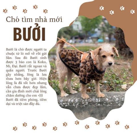 Nuôi Bưởi thì cần kiên nhẫn 1 chút vì là chó lông hơi dài, đang lưa thưa xấu và lâu không tắm là nó dễ hôi. Ngoài ra thì ăn uống tốt, đã tiêm đủ phòng bệnh, dại lẫn triệt sản, không phải lo nghĩ gì."