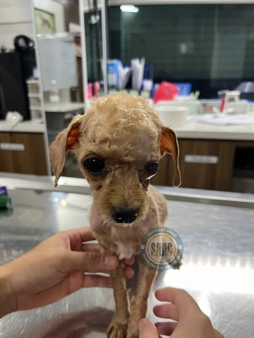 Không đành lòng, bạn đã đưa em về, cạo lông, tắm rửa, rồi liên hệ với Sân để em được chăm sóc tốt hơn và tìm lại chủ. Hiện tại bé đang được chăm sóc và theo dõi sức khỏe tại Bệnh Viện Thú Y Hùng Vương.