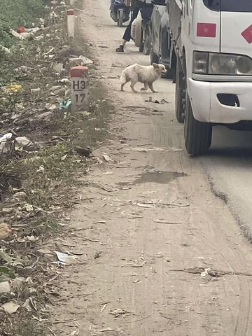 Em chó lai fox trắng được bạn Hải bắt gặp đang loay hoay tìm cách sang đường ở khu vực Yên Nghĩa gần cây xăng Cổ Bản, Đồng Mai, Hà Đông, Hà Nội trong khi dòng xe dài nối đuôi nhau lưu thông.