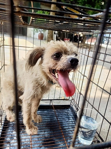 Em đã lang thang một mình ở khu vực ngõ 37 Thanh Liệt, Thanh Trì suốt hơn một tháng qua. Người gầy gò, lông bết lại vì bụi bẩn, lúc nào cũng trong tình trạng đói khát.