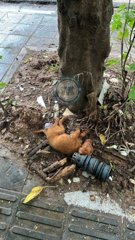 Đối diện với một điểm bán chó mèo cảnh có tiếng ở Hà Nội, là hình ảnh một em chó nhỏ ướt nhẹp, nằm thoi thóp dưới gốc cây, thở từng nhịp yếu ớt dưới trời mưa tầm tã.