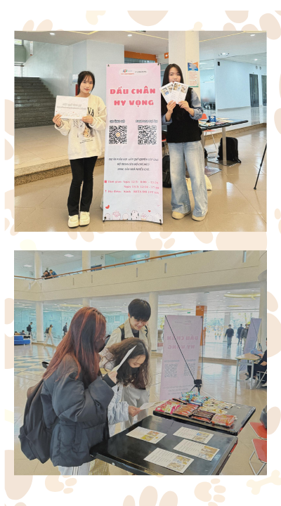 Dấu Chân Hy Vọng là dự án thiện nguyện hướng được thành lập bởi nhóm các bạn sinh viên trường đại học FPT Hà Nội tới việc hỗ trợ nhóm cứu hộ chó mèo Săn Nhà Nhiều Chó . Với tinh thần “Lan tỏa yêu thương – Chia sẻ hy vọng”, dự án mong muốn kêu gọi cộng đồng chung tay giúp đỡ các bé chó mèo có cơ hội được sống tốt hơn.