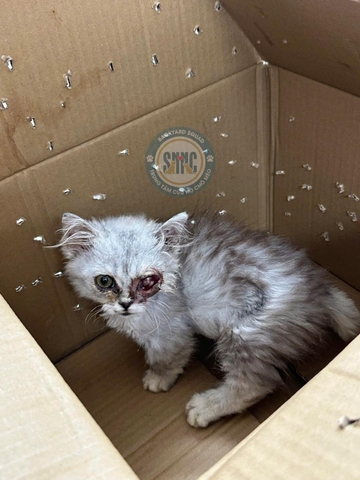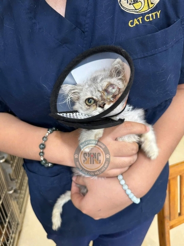 Ngay sau đó, em đã được đưa đến Bệnh viện thú y Cat City để bác sĩ thăm khám. Hiện em đang được điều trị kháng sinh, kháng viêm và bồi dưỡng sức khỏe. Khi đủ khỏe, em sẽ được phẫu thuật để bỏ mắt, chấm dứt cơn đau mà em đã phải chịu đựng bấy lâu.