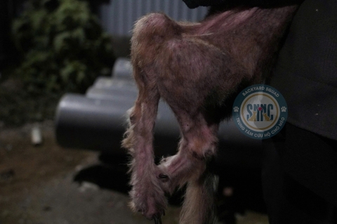 Đứa thì nằm bẹp tại một nhà vệ sinh công cộng với cái tai rướm máu, chân thì khập khiễng, cũng thật may đã có bạn Đức Linh, MoMo, chị Cheng Võ và rất nhiều những cô chú bán nước thay phiên nhau trông cho em bình yên, nghỉ ngơi tới khi cứu hộ có mặt.