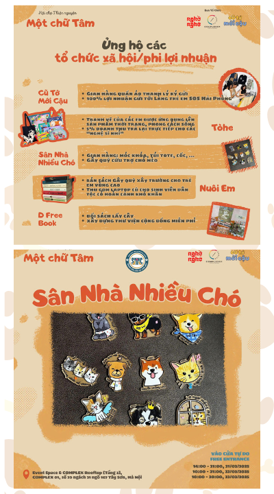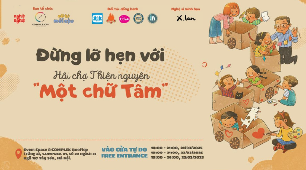 Hội chợ là sự kiện vào cổng tự do không tốn phí với rất nhiều hoạt động thú vị sẽ diễn ra trong 03 ngày từ 21-23/03/2025 dành cho tất cả mọi người. Hội chợ được tổ chức tại: Event Space & COMPLEX Rooftop [Tầng 3] - COMPLEX 01, số 29 ngách 31 ngõ 167 Tây Sơn, Đống Đa, Hà Nội. Các hoạt động bao gồm: gian hàng mua sắm, gian hàng từ các tổ chức xã hội/ phi lợi nhuận, khu trưng bày "Tâm sự" cùng những workshop sàng tạo khác.
